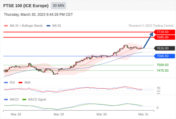 如跌破 7566.50 ,英国富时100指数期货 目标方向定在 7509.50 和 7475.50 。