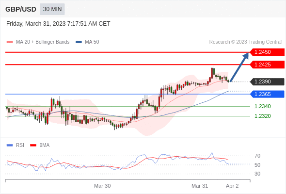 在 1.2365 之上,看涨,目标价位为 1.2425 ,然后为 1.2450 。
