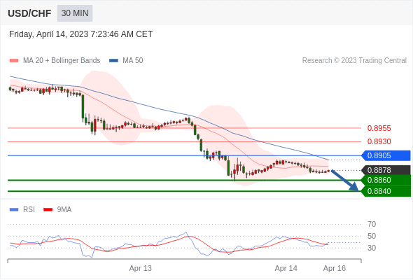 在 0.8905 之下,看跌,目标价位为 0.8860 ,然后为 0.8840 。