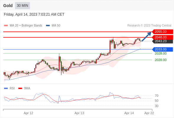 在 2033.00 之上,看涨,目标价位为 2048.00 ,然后为 2055.00 。