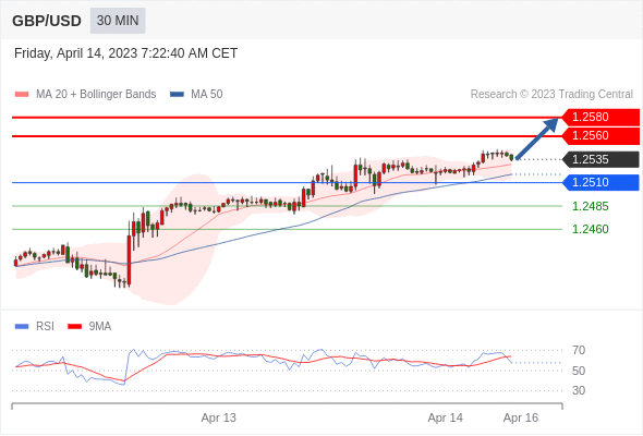 在 1.2510 之上,看涨,目标价位为 1.2560 ,然后为 1.2580 。