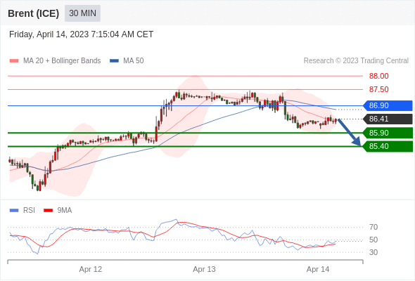 布伦特原油 (ICE)? (M3)? 当日内: 短期关键阻力位在86.90。