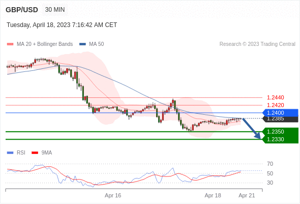 在 1.2400 之下,看跌,目标价位为 1.2350 ,然后为 1.2330 。