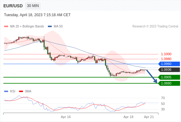 在 1.0960 之下,看跌,目标价位为 1.0905 ,然后为 1.0880 。