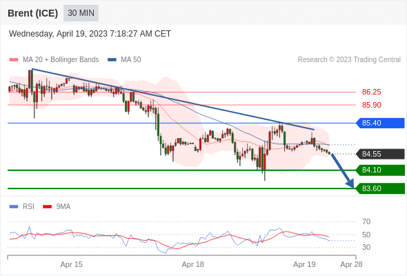 在 85.40 之下,看跌,目标价位为 84.10 ,然后为 83.60 。