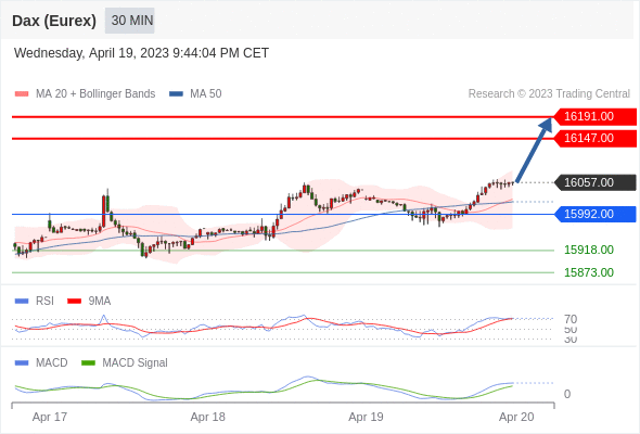 如跌破 15992 ,德国DAX指数期货 (Eurex) 目标方向定在 15918 和 15873 。