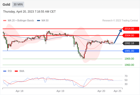 在 1981.00 之上,看涨,目标价位为 2004.00 ,然后为 2014.00 。