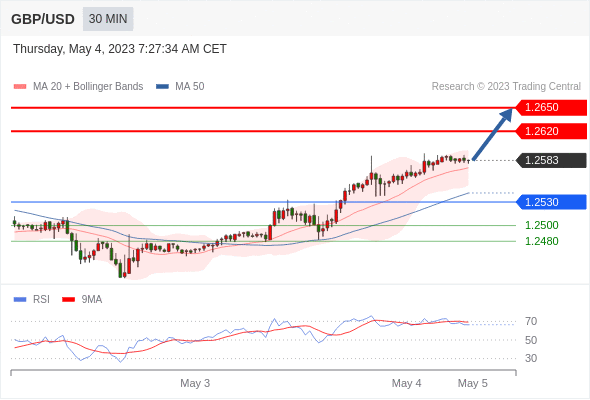 在 1.2530 之上,看涨,目标价位为 1.2620 ,然后为 1.2650 。