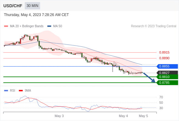 在 0.8855 之下,看跌,目标价位为 0.8810 ,然后为 0.8785 。