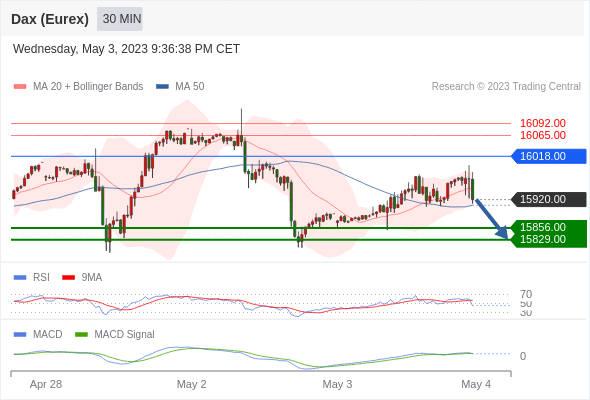 德国DAX指数期货 (Eurex)? 当日内: 逐渐下跌,当 16018.00 阻碍上行,则 15829.00 为目标位。