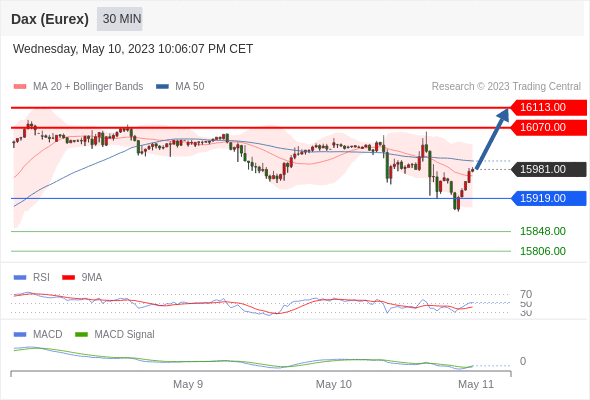 如跌破 15919 ,德国DAX指数期货 (Eurex) 目标方向定在 15848 和 15806 。