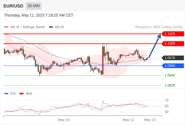 在 1.0960 之上,看涨,目标价位为 1.1005 ,然后为 1.1025 。
