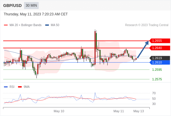 在 1.2610 之上,看涨,目标价位为 1.2640 ,然后为 1.2655 。