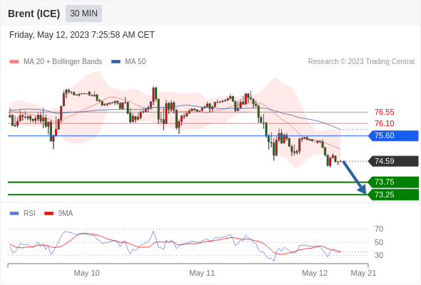 在 75.60 之下,看跌,目标价位为 73.75 ,然后为 73.25 。