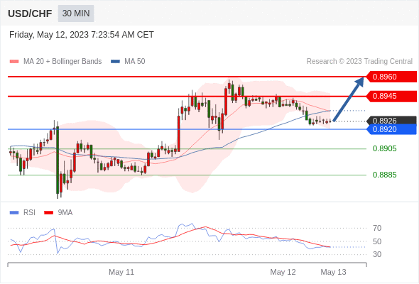 在 0.8920 之上,看涨,目标价位为 0.8945 ,然后为 0.8960 。