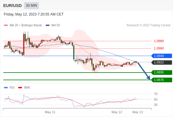 在 1.0940 之下,看跌,目标价位为 1.0895 ,然后为 1.0875 。