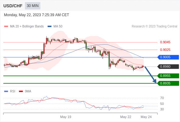 在 0.9005 之下,看跌,目标价位为 0.8955 ,然后为 0.8935 。