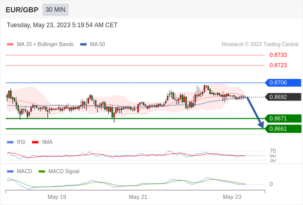 欧元/英镑 当日内: 当 0.8706 维持阻力位时,看跌,目标锁定在 0.8661 。