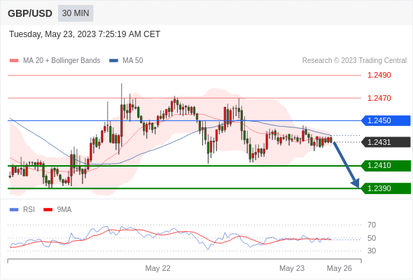 英镑/美元 当日内: 短期关键阻力位在1.2450。