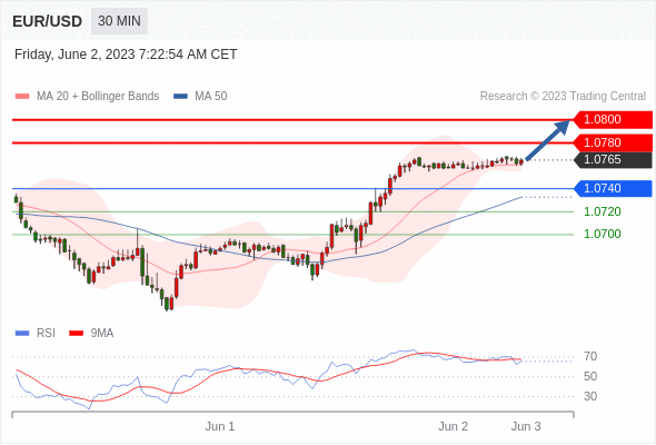 在 1.0740 之上,看涨,目标价位为 1.0780 ,然后为 1.0800 。