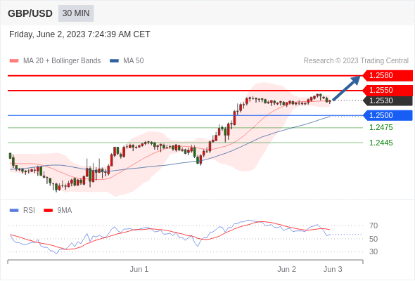 在 1.2500 之上,看涨,目标价位为 1.2550 ,然后为 1.2580 。