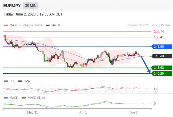 如突破 149.86 ,EUR/JPY 目标方向为 150.41 和 150.74 。