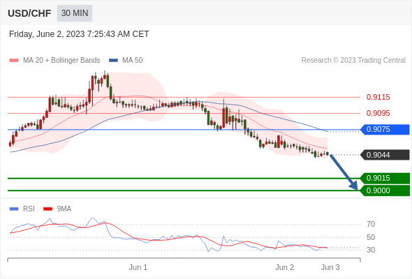 在 0.9075 之下,看跌,目标价位为 0.9015 ,然后为 0.9000 。