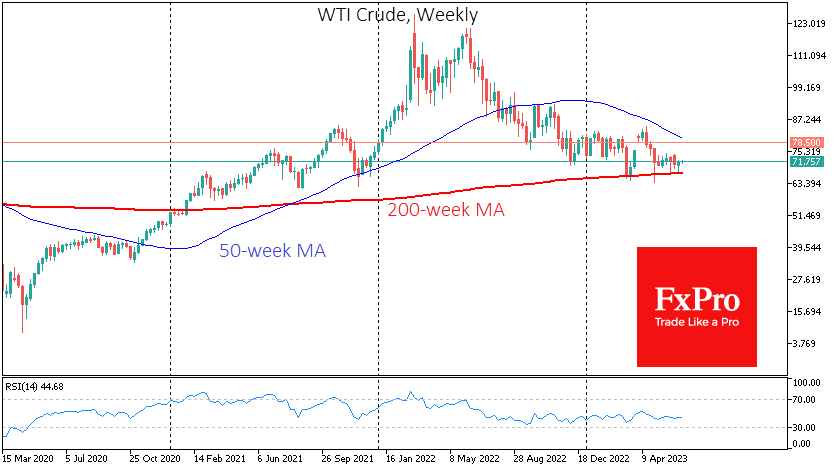 从技术上讲,到WTI的74美元和布伦特的78.5美元,油价反弹可能不会面临阻力,这是一个重要的阻力区间,此前一直充当支撑。下一个更严格的阻力位是WTI的78和布伦特的83.5,在200日(50周)移动平均线附近。走高会将当前的反弹重新归类为看涨逆转,但在高利率的支持下全球需求放缓,因此值得在长期内持谨慎态度。