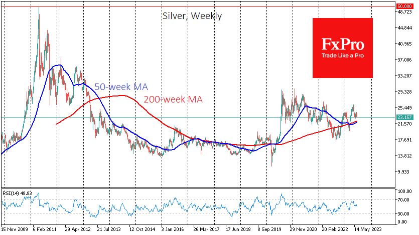继周二大幅下跌3%后,白银自6月初以来第三次测试23.2美元的支撑位。然而,自5月底以来,金价在两周内上涨了7.5%以上。价格已经逆转,未能突破50日移动均线和5月以来的50%水平。银价需要再下跌1美元至22.15美元,才能触及50周和200周移动均线的强劲支撑位。