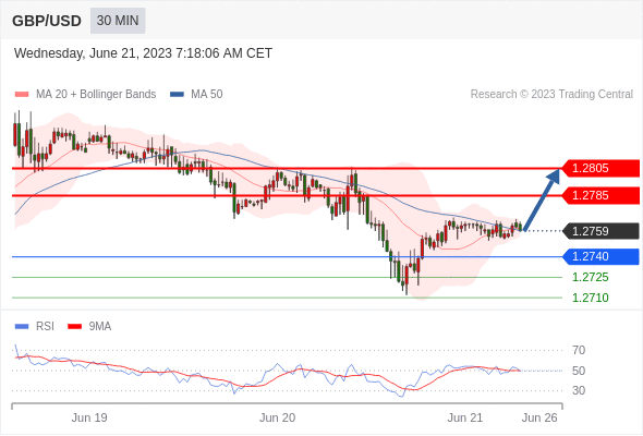 在 1.2740 之上,看涨,目标价位为 1.2785 ,然后为 1.2805 。