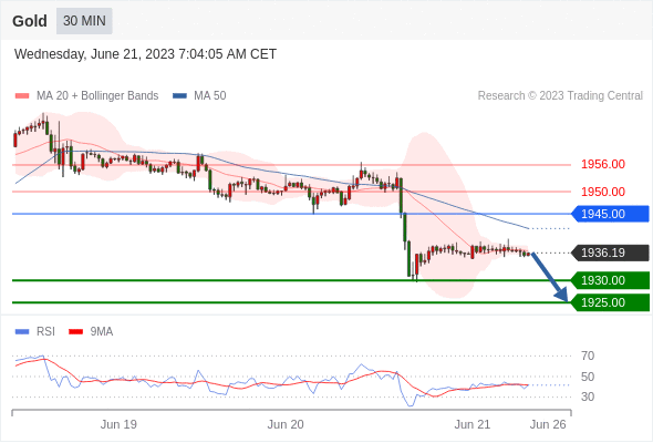 在 1945.00 之下,看跌,目标价位为 1930.00 ,然后为 1925.00 。