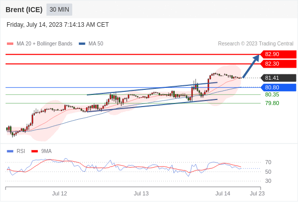 在 80.80 之上,看涨,目标价位为 82.30 ,然后为 82.90 。