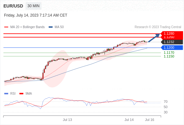 欧元/美元 当日内: 看涨。