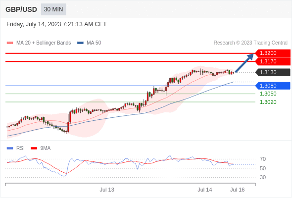 在 1.3080 之上,看涨,目标价位为 1.3170 ,然后为 1.3200 。