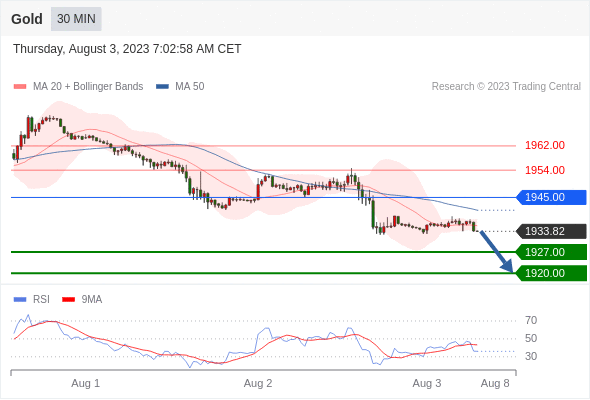 在 1945.00 之下,看跌,目标价位为 1927.00 ,然后为 1920.00 。