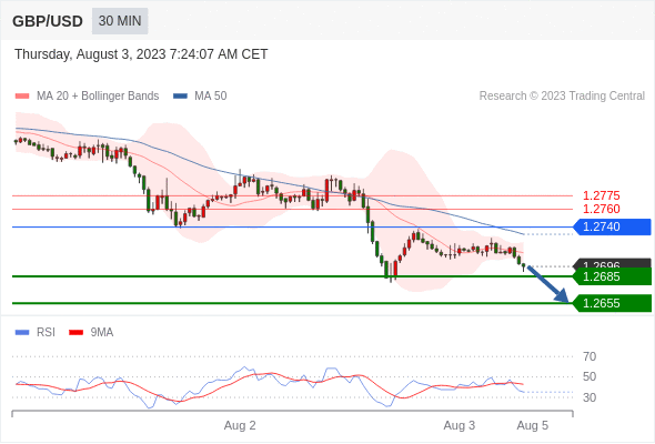 在 1.2740 之下,看跌,目标价位为 1.2685 ,然后为 1.2655 。