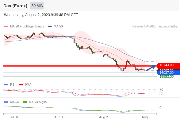 如跌破 16037 ,德国DAX指数期货 (Eurex) 目标方向定在 16003 和 15983 。
