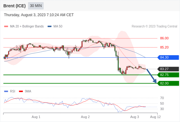 布伦特原油 (ICE)? 当日内: 目标为82.00。