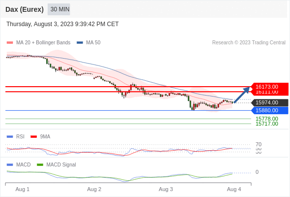 德国DAX指数期货 (Eurex)? 当日内: 有上涨的可能,目标价位定在 16173.00 。