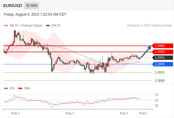 在 1.0935 之上,看涨,目标价位为 1.0965 ,然后为 1.0980 。