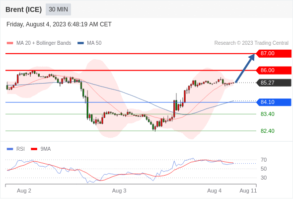 布伦特原油 (ICE)? 当日内: 目标为87.00。