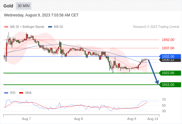 在 1932.00 之下,看跌,目标价位为 1922.00 ,然后为 1915.00 。