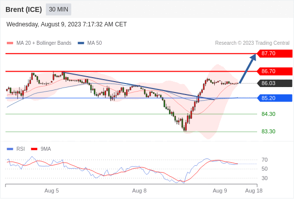 在 85.20 之上,看涨,目标价位为 86.70 ,然后为 87.70 。