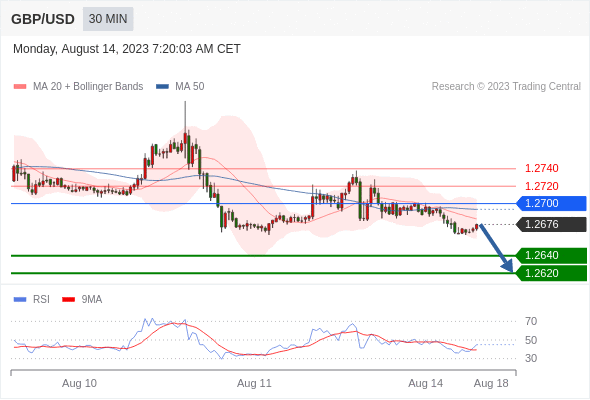 在 1.2700 之下,看跌,目标价位为 1.2640 ,然后为 1.2620 。