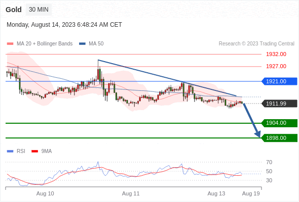 在 1921.00 之下,看跌,目标价位为 1904.00 ,然后为 1898.00 。
