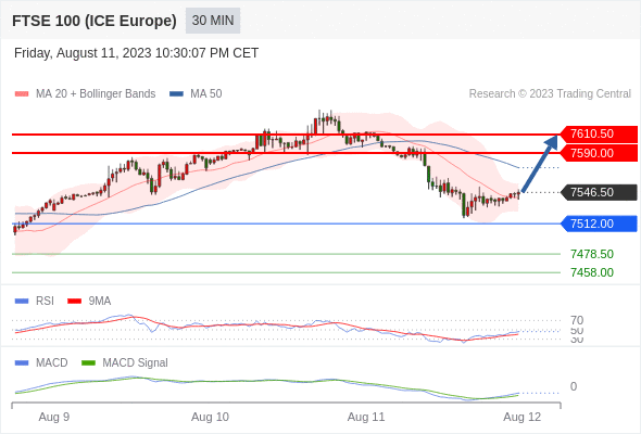 英国富时100指数期货 当日内: 有上涨的可能,目标价位定在 7610.50 。