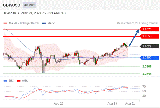在 1.2590 之上,看涨,目标价位为 1.2650 ,然后为 1.2670 。