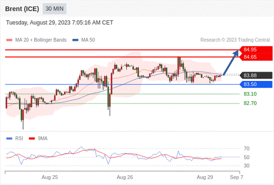 在 83.50 之上,看涨,目标价位为 84.65 ,然后为 84.95 。