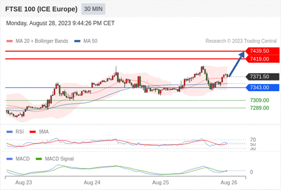 如跌破 7343 ,英国富时100指数期货 目标方向定在 7309 和 7289 。