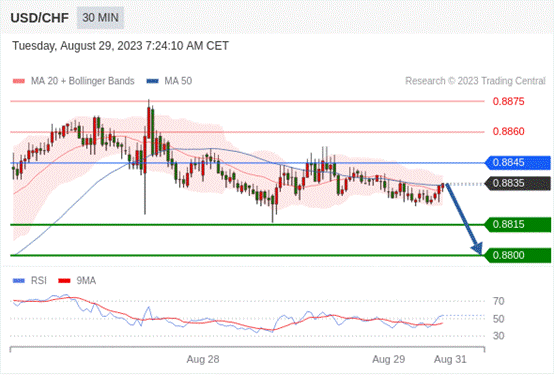 在 0.8845 之下,看跌,目标价位为 0.8815 ,然后为 0.8800 。
